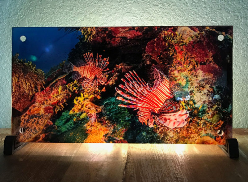 Kustom Sublimation is owned and operated by Dane and Tammy Dupuis. The idea arose as we searched for a unique way to reface the front of our kitchen cabinet doors and drawers. With a love of the ocean, we contacted our family friend, Ken Kiefer to find an underwater fish scene to display across our cabinetry. After trying to car wrap and digital print on aluminum sheets, it just didn’t look good enough.